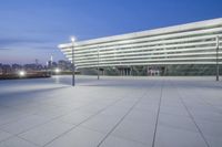 A stunning view of the modern architecture in Shanghai's business district at dawn. The cityscape reflects off the sleek surfaces of the buildings, illuminated by artificial light. A perfect representation of Shanghai's urban design.