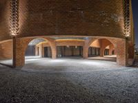 an image of a circular room at night with stone flooring and stone walls in the middle