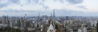 A breathtaking view of the Shanghai cityscape, with its towering skyscrapers and modern architecture. The city's skyline dominates the horizon, showcasing its status as a bustling metropolis in Asia.
