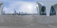 A stunning architectural marvel in Shanghai, China. The modern building features curved structures and glass walls, reflecting the city skyline. The open space and walkways create a vibrant urban atmosphere.