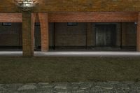 In the heart of Shanghai's urban design, two classic brick buildings stand tall, illuminated by the warm glow of street lights. Cobblestone surface and a fire hydrant add to the industrial charm of this city scene.