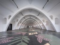 the empty space is decorated with flowers, with arches and light fixtures above them and below