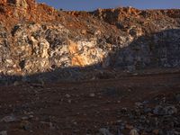 a hill with orange rocks and dirt, with a lone person walking along the sides of it