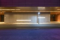 A modern building in the business district of Shenzhen, Guangdong, China. Neon lights illuminate the empty offices and the street below. The artificial light creates a vibrant city atmosphere at night.