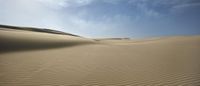 A stunning desert landscape with smooth sand dunes stretching to the horizon. The open space creates a sense of serenity and tranquility. The sandy surface and sloping dunes are a testament to the power of wind in shaping the Aeolian landforms. A perfect day in nature.