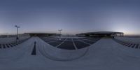 Skateboarder on Cement Ramp at Night in Empty Parking Lot
