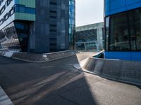 Skateboarder performing a trick in front of a modern office building with glass walls in the heart of Holland. The bustling city streets and European architecture create a vibrant urban atmosphere.