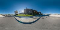 Skateboarder on Ramp Outside High-Rise Building in Toronto