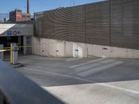 A skateboarder is seen performing tricks on a ramp in an urban parking lot. The skater can be seen looking back at an exit gate as they ride their skateboard. The location is in the city of Bremerhaven, Germany. The photo showcases the modern architecture of the surrounding buildings and the concrete street. The clear sky adds a beautiful backdrop to the scene. This image captures the energy of city life and urban design.