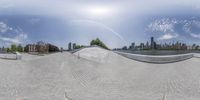 the 360 - view shows the skateboarder practicing tricks on the wall of the skate park