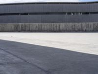 A skateboarder practicing tricks in an open space surrounded by modern architecture. The concrete and asphalt surfaces provide the perfect playground. The city's business district is visible in the background, along with a museum showcasing urban design.