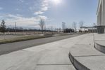 A skateboarder performs tricks on a street lined with modern architecture outside an office building. The cityscape provides a backdrop of corporate headquarters and residential areas. A sunny day adds a touch of urban energy to the scene.