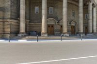 A man is skateboarding down the sidewalk of a church in front of a building in Toronto, Canada. The urban architecture with its classic design and symmetrical facade creates a perfect backdrop for this city life scene. The bright daylight enhances the details of the materials used in the construction. The building features windows, columns, and arches, and the curb line runs perfectly alongside the road. This image captures the essence of urban design in Toronto, where modernity meets classic architecture. The location of the shot adds a unique dimension to the image, as it showcases the cultural richness of the city. The background features a museum, adding further depth to the composition. The asphalt road provides a smooth surface for the skater to demonstrate their skills against the backdrop of the bustling city. This photo is an ideal representation of city life and the blending of architectural styles in Toronto.