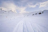 This stock photo showcases a breathtaking landscape in the French Alps. The image features a snowy mountaintop with skis lined up along the slopes. In the background, a ski lift can be seen against the clear sky. The open space and pristine nature of this tourist attraction make it an ideal location for winter sports enthusiasts. The glacial terrain and freezing temperatures create the perfect conditions for skiing on the Piste. Located in Europe, France offers a unique skiing experience in the majestic Alps.