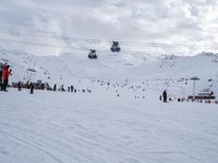 This breathtaking stock photo captures a scene of many people enjoying winter sports on the slopes near a gondola lift in the French Alps. The picturesque landscape showcases snow-covered mountains and open spaces during the day. With a backdrop of serene nature and fluffy snowflakes, this image will surely be a sought-after addition to any winter-themed collection. In the distance, clouds gracefully decorate the sky, adding to the overall beauty of this popular tourist attraction. The skiers and snowboarders effortlessly glide down the Piste, showcasing their skills in this freezing winter wonderland. Visitors can enjoy glacial landscapes, alpine scenery, and the charm of the French Alps. This image perfectly depicts the essence of winter sports, tourism, and the thrill of skiing and snowboarding in Europe.