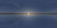 Open space at dawn with the sun's first rays illuminating the environment dome. Clouds filter sunlight for a soft glow. Endless landscape promises a sunny day.