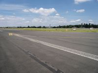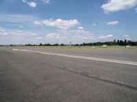 This image showcases an empty runway at Tempelhof Airport in Berlin, Germany. The clear sky above creates a striking contrast against the asphalt surface of the road. The lone car parked on the runway adds an element of solitude to the scene. The landscape surrounding the airport features open fields and trees, providing a serene and peaceful setting. This photo represents a beautiful day in Europe, where nature and recreation come together in an open space. It captures the essence of Tempelhof, a place where composite materials meet the clear sky.