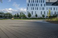 Modern office building in downtown Toronto with a sleek architectural design. The building's large windows reflect the clear blue sky and surrounding urban landscape. The hard shadows created by the sunlight add depth to the city's urban design.