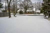 This stock photo captures a winter scene in a residential area of Canada. The image shows a driveway covered in snow, with trees lining the yard on both sides of the house. The grey sky and the icy surface create a freezing atmosphere. The photo provides a clear view of the property's entryway and the nearby parking lot. The open space and the quiet neighborhood contribute to the serene ambiance. This image can be used to represent winter, snowy landscapes, property ownership, and suburban living.