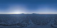 the sun is rising over the vast snow covered landscape in this panoramic photograph