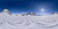 A stunning 3D rendering of a snow-covered landscape in the Alps, with majestic mountains and a full moon casting a soft glow. The clear sky and open space create a serene atmosphere. A perfect tourist attraction in Italy and France.