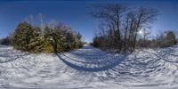 a picture of a snow path near a forest and a tree in the snow in a snowy area