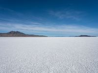 A lone snowboarder gracefully navigates the expansive salt flats of Salar de Atacama located in Bolivia. Against the backdrop of a clear sky, the snowboarder glides along the salt surface with the Bonneville Speedway in mind. The contrasting white of the salt and the blue of the sky create a mesmerizing sight. The desolate yet beautiful desert landscape, encompassing mountains and vast open spaces, is a true testament to the magnificence of nature. As the snowboarder carves through the snow-covered salt, the surrounding nature gracefully observes, while the distant Salt Lake City lies concealed behind the sand dunes. This serene image captures the essence of the salt flat's captivating beauty, highlighting the unique surface and its connection to the intricate desert ecosystem in Bolivia.