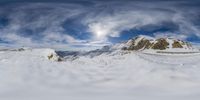 Snowy Landscape in Italy: Mountain Tops Peeking Through the Clouds