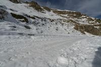 A breathtaking view of a snowy mountain in Italy. Two people on snowboards are heading up the slope, surrounded by a glacial landscape. The clear day and freezing temperatures make it a perfect day for off-road adventures.