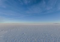 This stock photo features a stunning snowy plain in Salt Lake, Utah. The image showcases a white landscape covered in snow, with distinct footprints visible on its surface. The blue sky and clouds overhead add to the serene atmosphere. The photograph captures the beauty of nature in this open space, perfect for illustrating concepts related to dawn, day, desert, and landscape. The wide expanse of the salt lake creates a sense of tranquility and vastness. The image can be used to enhance content related to Utah, the USA, and stunning natural scenery.