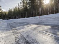 Snowy Road at Dawn in Mammoth Lake, California, USA