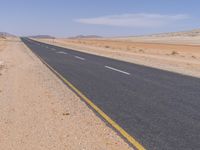 This is an image of an endless road in South Africa. The asphalt road stretches into the distance, disappearing into the horizon. The road is surrounded by a vast desert landscape with scattered trees and vegetation. The clear sky above adds to the feeling of vastness and endlessness. This photo represents the beauty of the African landscape and the sense of freedom and adventure that comes with a road trip through South Africa.