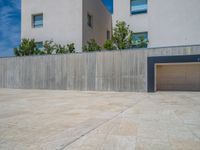 A modern office building in Spain's business district. The sleek architecture and concrete walls create a striking urban landscape. A clear sky and open space enhance the clean and professional atmosphere of the area.