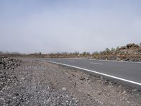 A gloomy day in Tenerife, Spain. The car drives along a winding road surrounded by rocky landscapes and mountains. The grey sky adds to the gloominess of the scene.