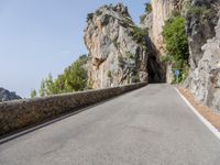 This stunning stock photo captures a scenic coastal road in Spain. The asphalt road winds its way through the breathtaking landscape, offering a mesmerizing view of the coastline and the crystal-clear waters of the ocean. Towering mountains, covered in lush vegetation and trees, frame the scene, creating a picturesque setting. The road surface is smooth and well-maintained, guiding travelers along the path. As the day is bright with a clear sky, the sun illuminates the entire area, making it even more beautiful. The rocky terrain and cliffs add a touch of drama to the landscape, while the rock walls and outcrops showcase the unique geology of the region. This iconic road provides an overview of the stunning Balearic Islands in Europe, making it a must-visit destination for nature lovers and adventure seekers.