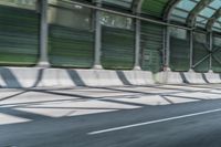 This stock photo showcases a steel bridge in Hong Kong, Asia. The architecture of the bridge is remarkable, with its strong steel structure. The bridge spans over a busy road, surrounded by concrete and asphalt. The road surface is lined with patterns, creating an interesting visual effect. The photo captures the hustle and bustle of the city during the day, with motion blur from passing vehicles. In the background, a towering building can be seen alongside the bridge, adding to the urban atmosphere. The lush green shade from trees creates a refreshing contrast amid the concrete jungle. This image is perfect for illustrating the bustling city life in Hong Kong, as well as concepts related to infrastructure, transportation, and architectural design.