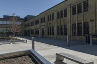 This is a photo of a modern architecture building in the bustling city of Toronto, Canada. The building's facade is made of concrete and features large windows that reflect the clear sky above. Surrounding the building, the urban design incorporates brownstone and brick structures, creating a unique mix of architectural styles. The road surface and public spaces are well-maintained, providing a pleasant environment for pedestrians. The photo captures the hard shadows cast by the buildings, adding depth to the scene. This image represents the dynamic and vibrant urban landscape of Toronto.