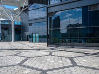 This stock photo features a stone path with small white circles in the middle, located in Kaohsuing, Taiwan. The path leads to a modern office building with large glass windows, situated in an open space within the bustling business district. The image captures the vibrancy and energy of this dynamic city in Asia, showcasing the fusion of traditional and contemporary elements. The paver surface of the path adds a unique charm to the overall scene, creating a visually appealing and inviting environment. This photo is perfect for illustrating concepts such as urban development, business opportunities, and the commercial growth of the Republic of China.