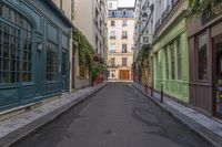 The image shows a straight road in the city of Paris at the break of day. The architecture of the city is a combination of classic and urban design. The road's asphalt surface and lane markings are visible as it leads through a neighborhood filled with low buildings and cafes. It captures the essence of city life and the bustling urban atmosphere. France, known for its rich history and cultural heritage, is located in Europe. The image also features a charming restaurant and bar, where people can eat out and enjoy the scenic surroundings of this beautiful human settlement.