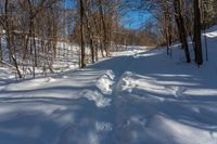 A straight road cuts through a snowy area in rural Ontario, Canada. The snow-covered trees and snowbanks on the far side of the image create a serene winter landscape. The clear sky overhead indicates a beautiful day in Toronto. This scenic road is perfect for winter drives and exploration.