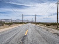 Straight road through California's Mojave Desert, with windmills and majestic mountains. Clear sky highlights the arid landscape typical of USA road trips. A quintessential day in Los Angeles outskirts.