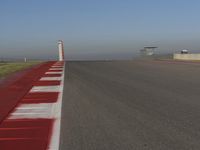 A straight road stretches far into the distance, lined by a clear blue sky. The asphalt surface reflects the light, creating a stunning visual effect. This road is the perfect setting for a race or a relaxing drive.