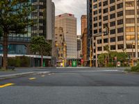 This stock photo showcases a straight road in Wellington, New Zealand. The asphalt road leads through a bustling business district, surrounded by office buildings and shops. The photo captures the early morning light, as dawn breaks over the city. A traffic light stands at the intersection, guiding the flow of traffic. The photo's composition emphasizes the straightness and orderliness of the road, creating a sense of direction and urban life.