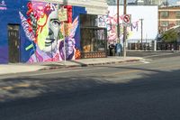 This image showcases the vibrant urban life of Los Angeles. The photo captures a bustling city street, adorned with graffiti murals and street art. The asphalt road stretches into the distance, lined with parking lots and residential buildings. The hard shadows cast by the buildings create an interesting play of light and shade. Los Angeles' unique urban design and public spaces promote recreation and artistic expression. This photo encapsulates the energy and diversity of the city, highlighting its thriving art district and the vibrant street culture that defines the Los Angeles city life.