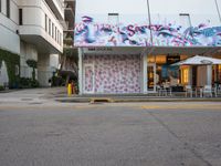 This stock photo captures a lively street scene in Miami Beach, Florida. An outside view of a building with graffiti paint on its side is showcased, with street furniture set up around the corner. The bustling urban environment of Miami can be seen, with people going about their day and enjoying the city life. The road and asphalt add to the urban ambiance. This scene offers a glimpse into the vibrant atmosphere of Miami, with various shops, storefronts, restaurants, and eateries lining the street. The photo perfectly captures the urban design and energy of this popular city in the USA.