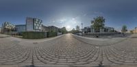 A snapshot of Berlin, Germany, showcasing the city's modern architecture and vibrant urban design. The fisheye lens captures the bustling streets, high-rise buildings, and clear sky. This is a glimpse of the dynamic business district in Europe's metropolitan area.