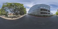 A panoramic view of the streets and parking spots in Los Angeles, California. Modern architecture lines the roads, while lush vegetation adds color to the residential areas. This bustling urban landscape showcases the vibrant city life of Los Angeles.