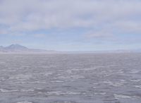 Rugged desert landscape in Utah, USA. Mountains and open spaces create a stunning backdrop. The horizon meets the clear blue sky, while the salt lake and ice cap add a unique touch. Nature at its finest in Salt Lake City.