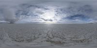 A vast salt landscape near Salt Lake City, Utah, under a sunny sky. The desert scene with visible sun and mountains highlights the USA's stunning natural beauty.