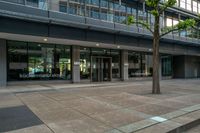 This is an image of a restaurant in Stuttgart, Germany. The urban design of the cafe's storefront and surrounding buildings create a vibrant atmosphere in the city. The gray building features glass front doors and large windows, allowing passersby to see inside. Located on a bustling street, the cafe is situated near shops and other restaurants, making it a popular spot for locals and tourists alike. Outside, a tree adds a touch of greenery to the urban landscape. This photo captures the essence of dining out in Stuttgart on a bright day.